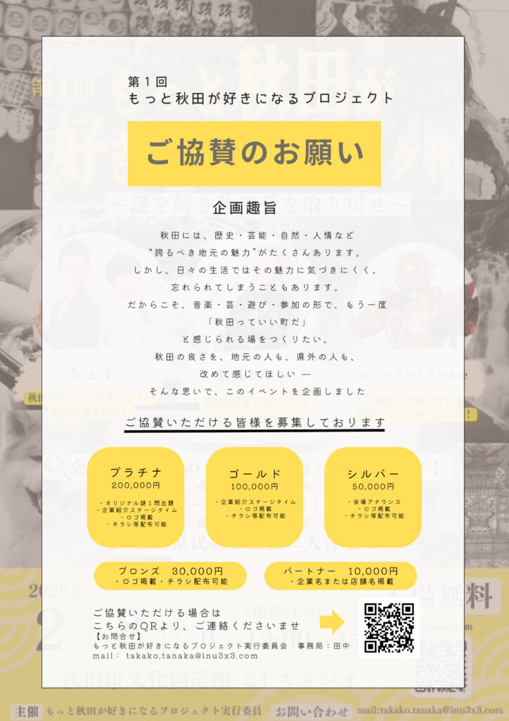 ここから始まる時間が、秋田をもっと好きになる“きっかけ”になりますように。皆さまのご参加を心よりお待ちしています。